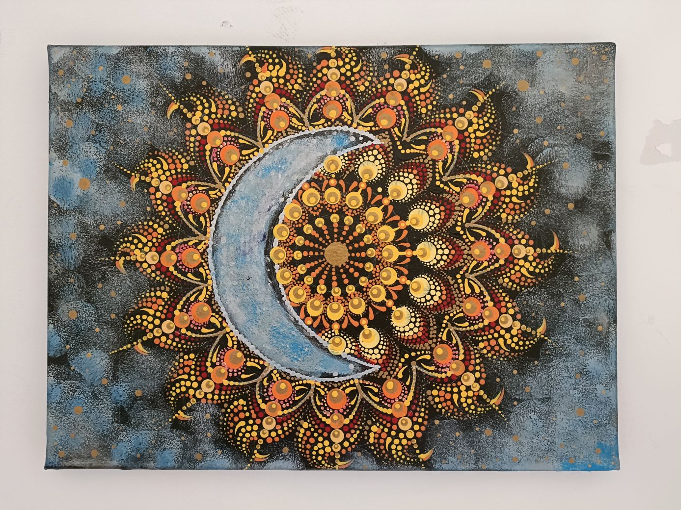 אני מוצאת ביצירת המנדלות שלי חיבור של דפוסי האישיות שלי, כמופרעת קשב אני מוצאת שקט ורגיעה בין הנקודות. יש בזה מין תרפיה, ברקע אני שומעת מוזיקה או פודקאסטים מעניינים, וכך מתהוות להן יצירות שונות. אני לא משתמשת בשבלונות מוכנות, ואין לי מושג איך תראה התוצאה הסופית.