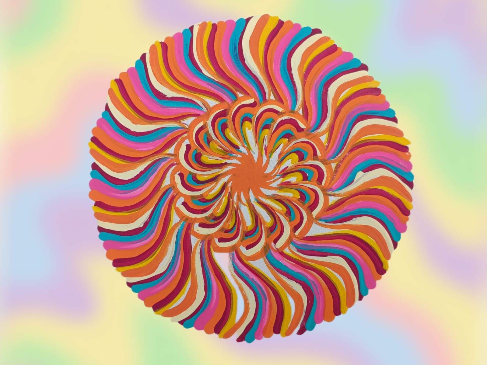 בינתיים עברתי את האתגר הראשון שהיה יצירה חופשית בגווני הקשת שאותם יוצרים באמצעות ערבוב גוונים דומים.