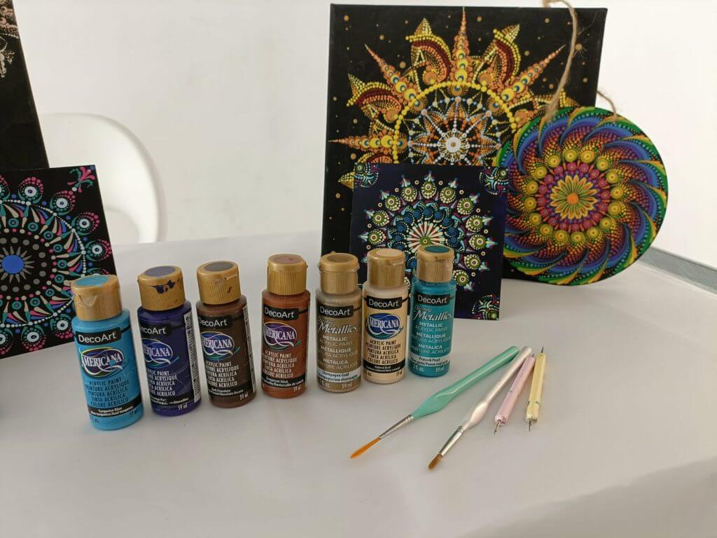 ובינתיים ממשיכה להתנסות בציורי מנדלות על חומרים שונים כמו אבן ועץ.