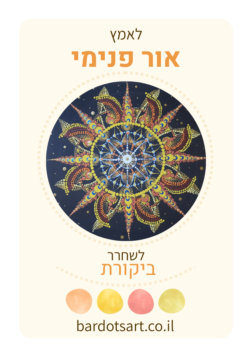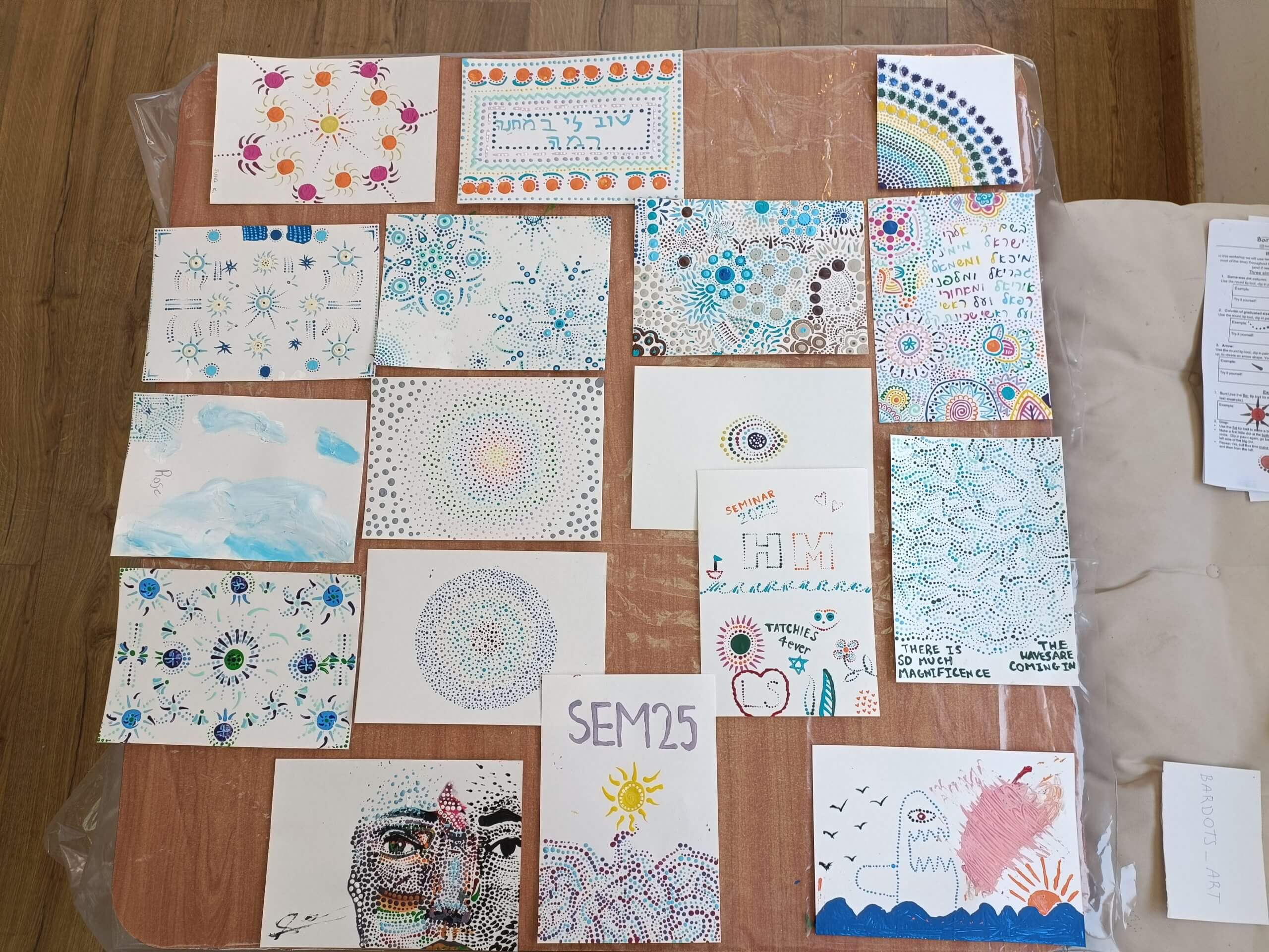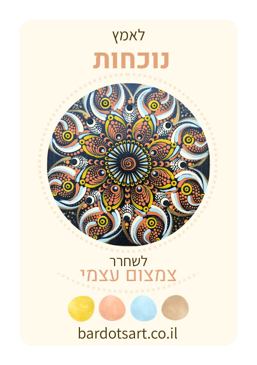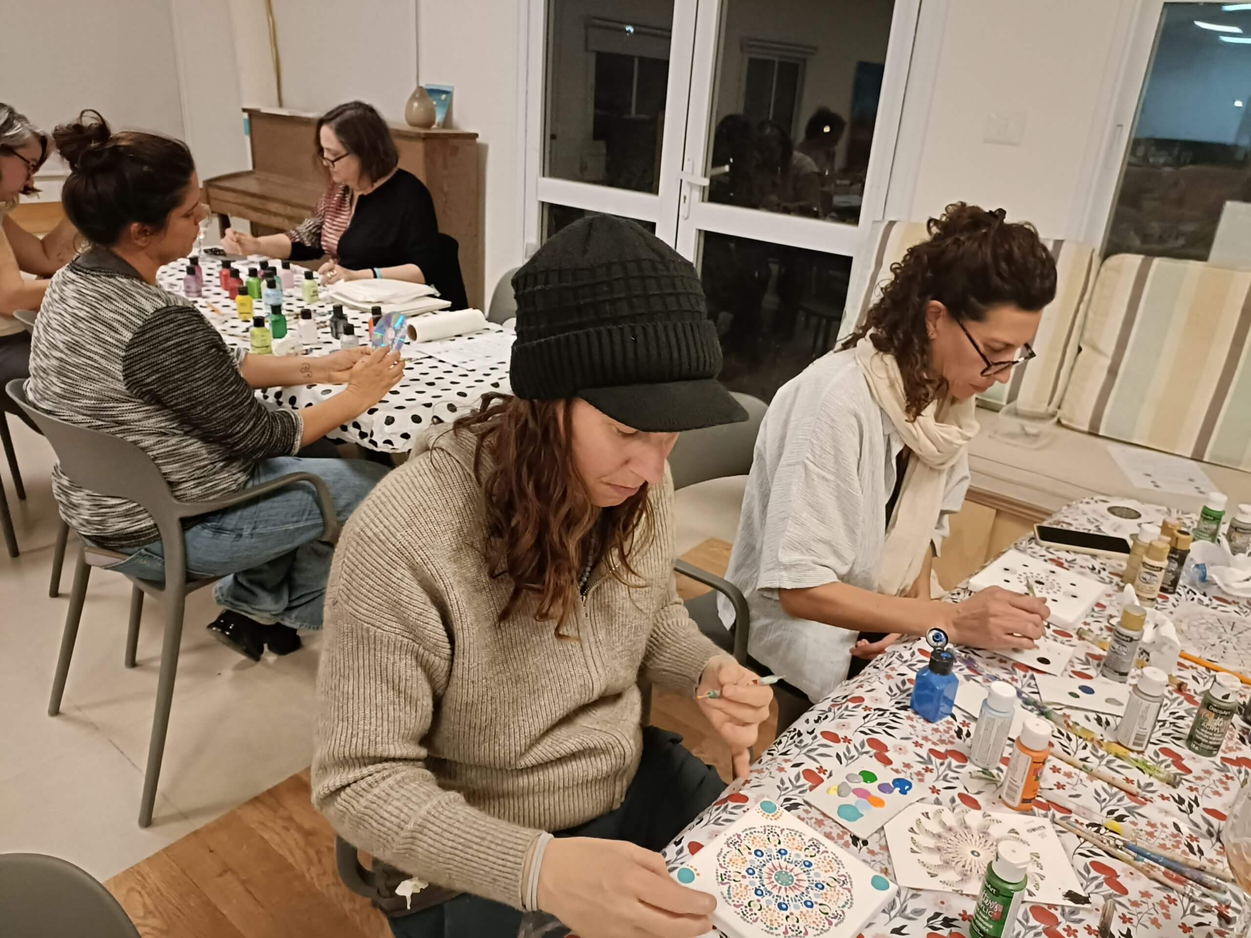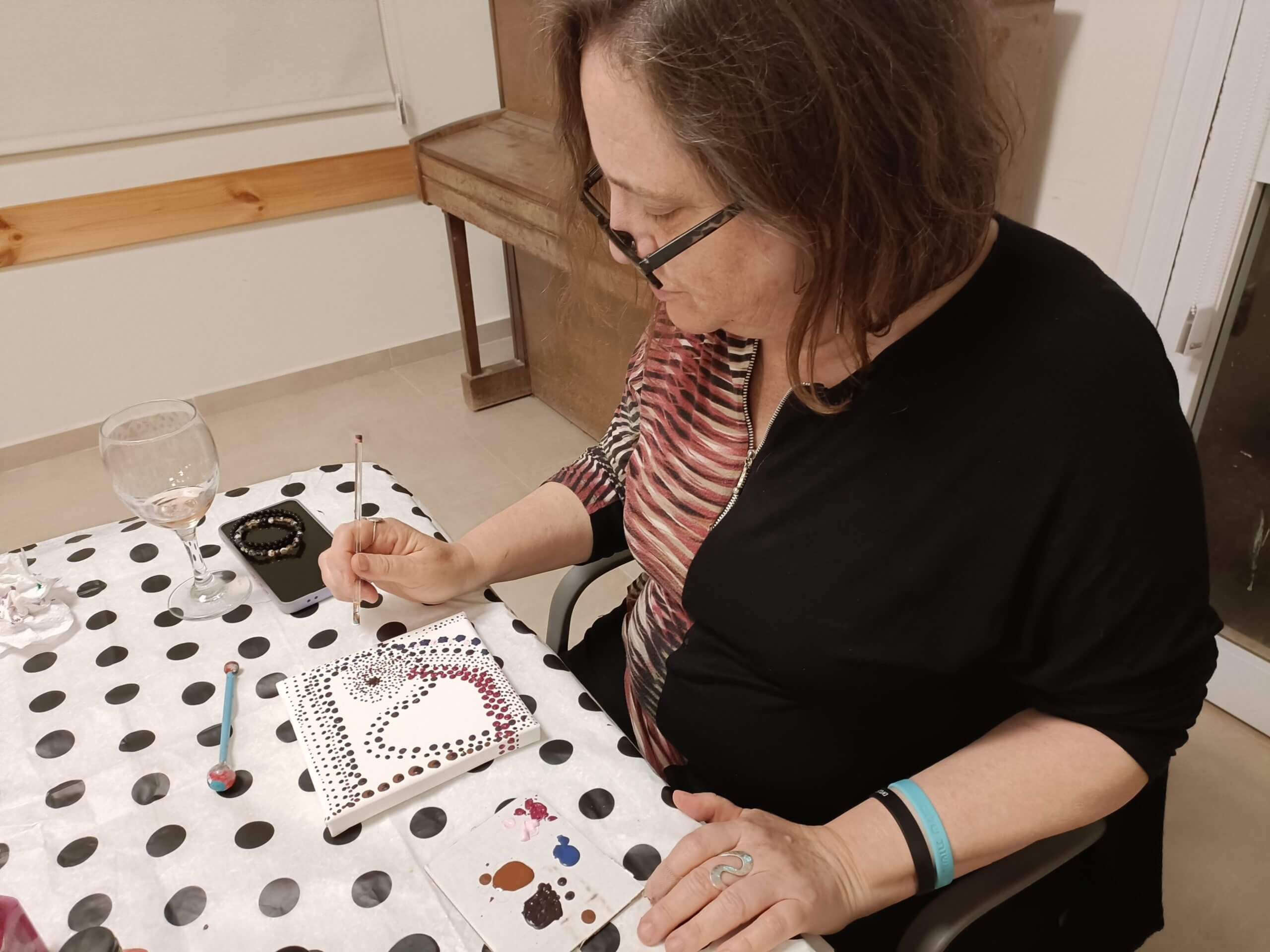 ציוד: אני מגיעה עם כל הציוד הנדרש – צבעי אקריליק איכותיים, מנקדים, משטחי ציור וכל החומרים לחוויה מלאה ומקצועית.