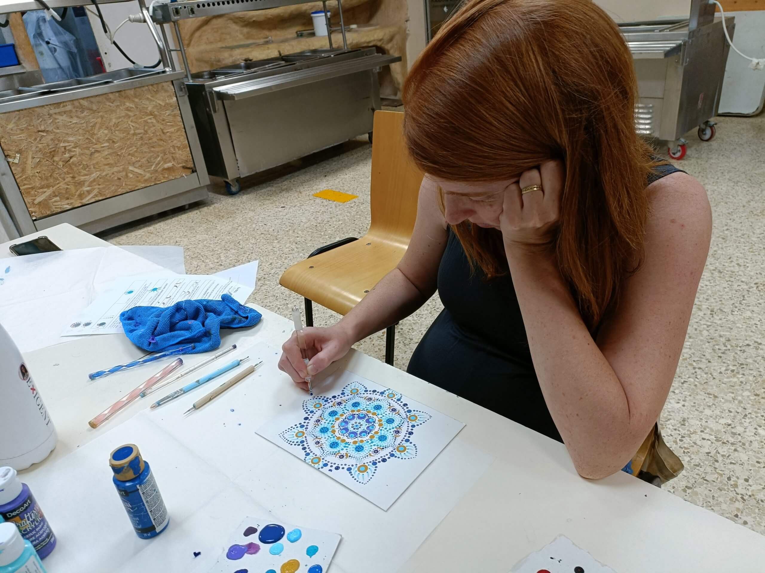 אני מאוד אוהבת להנחות קבוצות וחשוב לי ליצור למשתתפים מרחב נעים שקט ומאפשר. דרך הנחיה מדויקת המשתתפים לומדים את טכניקת הניקוד ומצליחים תוך זמן קצר להביא את הביטוי הפנימי שלהם להתממש במנדלה.